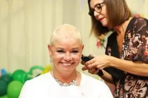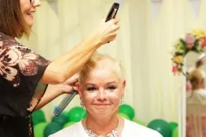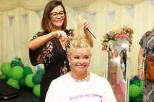 The ’big shave’ took place on Saturday 25 August at the Austin’s fairytale themed, Family Fun Day. This is an event held every year at Austin’s home for the firm’s staff and their families. Austin was dressed as Rapunzel and during the afternoon had her head shaved in front of 150 guests. The deed was carried out by hairdresser, Jo Gates, who went to Barclay School with Austin.